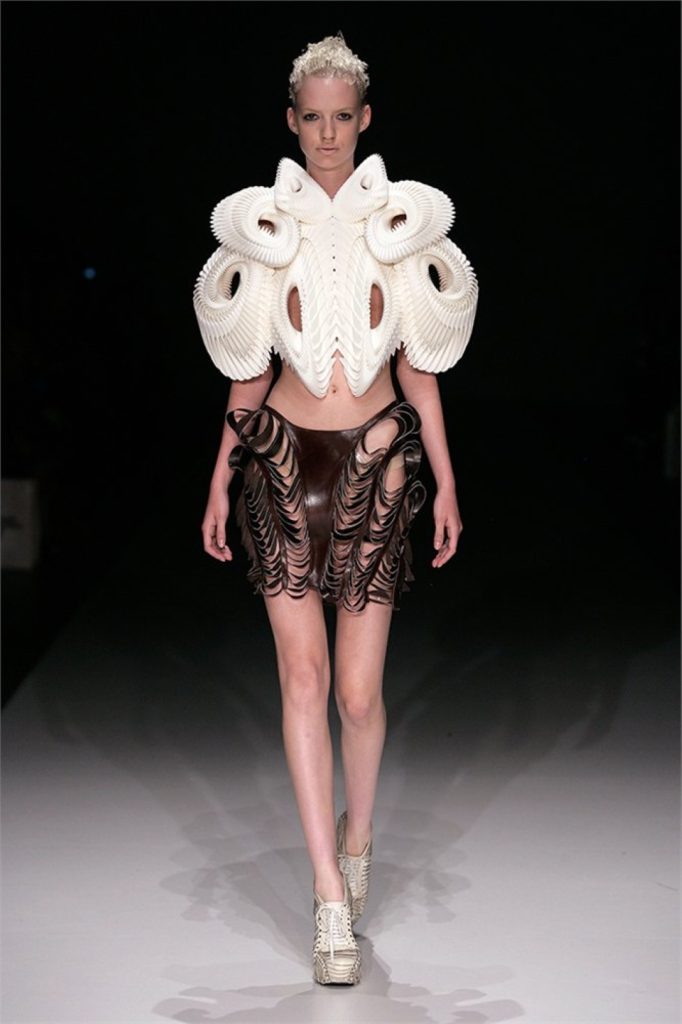 חלק מהקולקציה "קריסטליזציה", אשר תוצג במלואה בחודש הבא בשבוע האופנה בלונדון (הידוע בהיותו אוונגרדי יותר מאחיו הבולטים: ניו יורק, פריז ומילאנו), הוא פרי שיתוף פעולה מרתק בין ואן הרפן, דניאל ווידריג (Daniel Widrig) וחברת MGX. by Materialise. אלו, שמו לעצמם מטרה ליצור קולקציה של פריטי לבוש בהדפסה תלת ממדית והצליחו ליצור חולצה לאישה ששוברת את הגבולות שבין עיצוב אופנה לעיצוב תעשייתי.