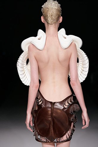 בניגוד לעולם האופנה בו הדפסה תלת ממדית עדיין לא נתפסת כדרך ייצור לגיטימית לפריטי לבוש, טכניקת הדפסה זו נפוצה ומקובלת מאוד בעולם העיצוב התעשייתי, עיצוב המוצר והאדריכלות. עובדה זו אתגרה את המעצבים אשר עיצבו ויצרו חולצה שבנויה מצורות החוזרות על עצמן בגדלים וצפיפויות שונות בכדי ליצור דגם יחיד שעוטף את גוף הלובשת, נח על כתפיה ומשאיר את הגב חשוף לגמרי.