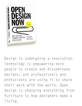 "עיצוב עובר מהפכה. הטכנולוגיה מעניקה ליותר אנשים את הכוח ליצור ולהפיץ עיצובים. אנשי המקצוע וחובבים נלהבים משתמשים בטכנולוגיה כדי לשתף את עבודתם. עיצוב פתוח משנה הכול, מרהיטים ועד לאופן שבו מעצבים מתנהלים."
