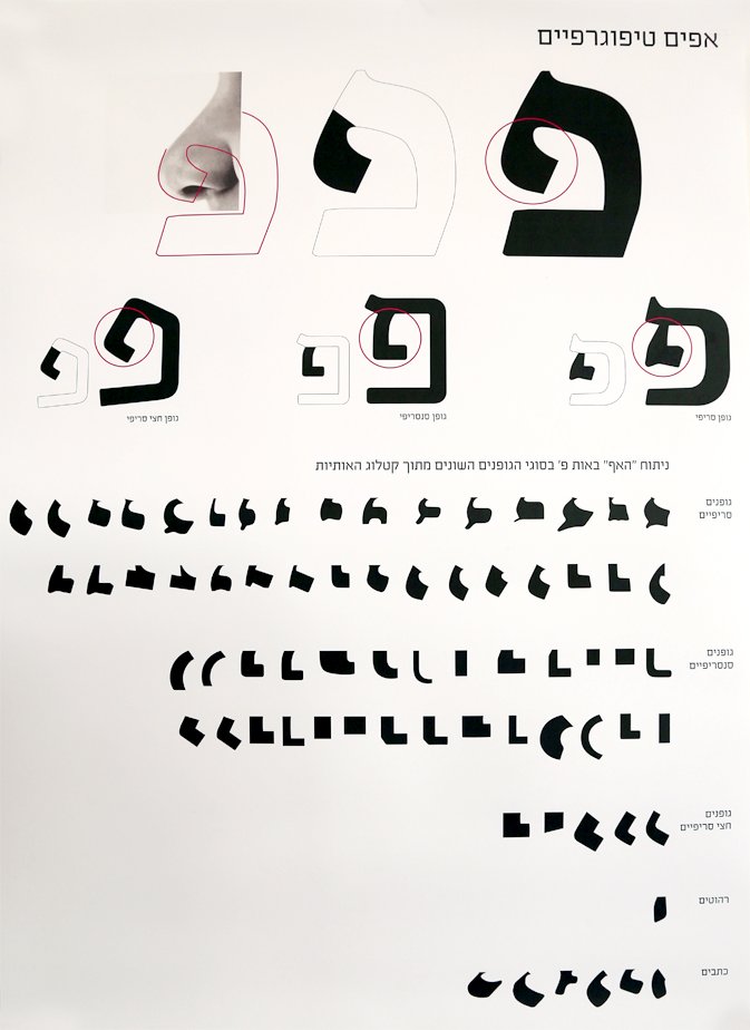 בחקירת הפלטה הסגנונית, מאיה התמקדה ב"אף" של האות פ' (החלק באות שנראה כמו אף). בפרויקט היא יוצרת את ההזדמנות עבור כל מבקר לבוא ולמדוד מהו ה-פ' המתאים לאף שלו.