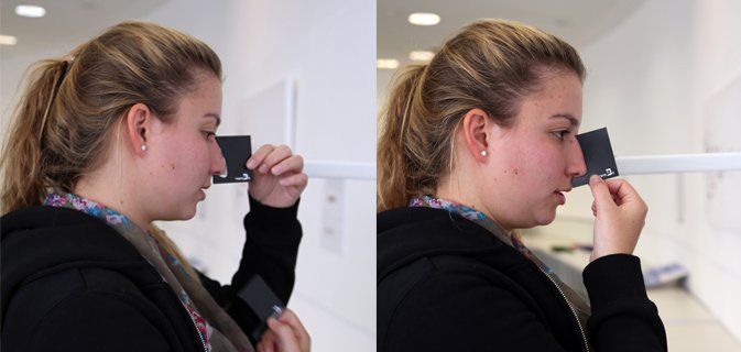 עמדת מדידה של האפים. כל מד הוא למעשה חלק של האות פ' מפונט אחר. מוניטור מציג לאנשים צילום של עצמם וכך ביכולתם לבדוק האם ה-פ' מתאים להם או שעליהם למצוא פ' אחר