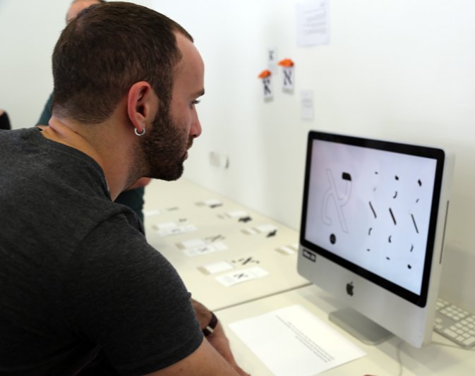 רועי אדר במחווה למשחק נוסטלגי "סיימון", מלמד את המבקרים את חלקי האות. המשחק מציג רצף של חלקים המהווים את הפלטה הסגנונית של כל אות, על הצופה לחזור על אותו הרצף בסדר שניתן ועם החלקים הנכונים לאות הרלוונטית.