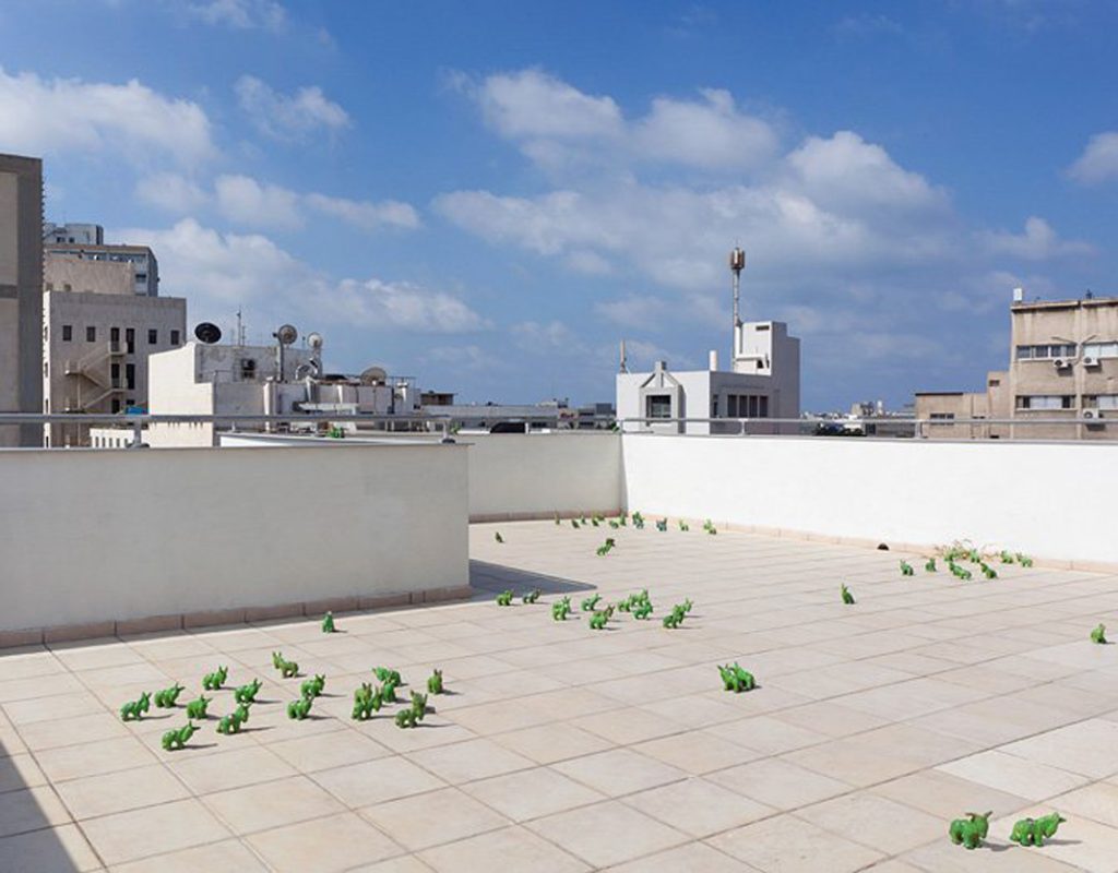 בקומה השלישית מציג רועי מעין, אמן קרמיקה ואוצר, בוגר המחלקה לקרמיקה בבצלאל. בעבודתו, מייצר מעין המוני חמורים ירוקים קטנים בטכניקת לחיצה; צבא טרה-קוטה מיניאטורי פולש, מסמן דרך, המטפס מקומת הקרקע עד ל"כר המרעה" שבקומת הגג.