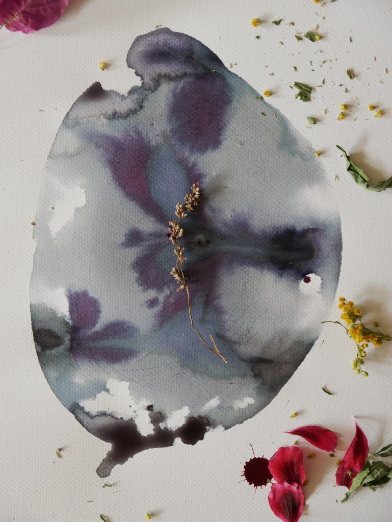"העניין בצבע טבעי שהוא תמיד עובד הפוך על הפוך, כך שתמיד נוכח בו אלמנט ההפתעה. חלקי צמחים שנראים הכי מלאי צבע, מתבררים בסוף כהכי פחות רלוונטיים ליצירת הצבעים. מעבר לכך, במהלך העבודה על הפרויקט, ליאור הציעה לעבוד עם צמח שלא חשבתי עליו – אפונת הפרפר. זה צמח שאפשר לגדל בארץ והוא מפיק צבע כחול עז. זה צבע אסיאתי, שמוכר בתעשייה במלזיה, שם משתמשים בו במנת האורז המסורתית. לא יצא לי לעבוד איתו לפני כן ולא היה לי ניסיון בזיקוק שלו, והגילוי שלו היה משמעותי עבורי – זה הפך לגילוי של עוד כלי. אם לא הייתי לוקחת חלק בתערוכה סביר להניח שלא הייתי נחשפת אליו בצורה כזו".