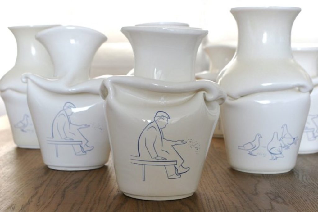 מעבודתה של מירב פלד-ברזילי, הוקסמתי כבר כשנתקלתי בה לראשונה לפני שלוש שנים, כשהציגה אותה כעבודת גמר בסיום לימודיה במכון הטכנולוגי חולון. העבודה המציגה 2 אגרטלים עשויים קרמיקה לבנה ונקייה, נוצצים מציפוי הגלזורה ועם זאת נפולים. פלד- ברזילי מציגה בפנינו את הפרשנות המעניינת שלה לזקנה. כשאנחנו חושבים על ייצוג של זקנה באגרטלים עולה ודאי במוחנו אגרטל ישן וסדוק, שצבעו מתקלף, כזה שחינו סר. אך אגרטליה של פלד-ברזילי מדמים אדם שגילו צעיר, אך נפשו זקנה. פלד ברזילי מייצרת כאן אסתטיקה מחודשת למושג זקנה. מהרגע שיוצרו האגרטלים בייצור תעשייתי בתבניותיהם הם קופלו ונמעכו ידנית על מנת לקבל את צורתם הנוכחית. רק אז המשיך התהליך בחומר, שכלל שריפה חוזרת בתנור, ציפוי גלזורה ועוד.