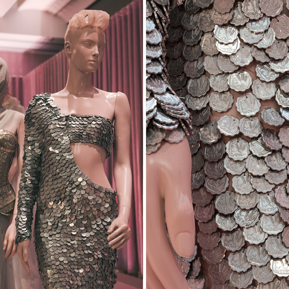המרקם הייחודי של השמלה שעיצב שי שלום נוצר באמצעות 15 אלף מטבעות אגורה מאוסף המטבעות העצום שהיה שייך לאביו של המעצב. כל מטבע חורר ונרקם לשמלה בתהליך שנמשך מאות שעות, וחיבר את ״האוצר״ המשפחתי עם אייקון מוכר בתרבות הישראלית.