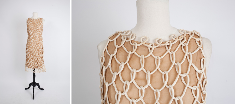 פיני לייטרסדורף, שמלת רשת דייגים, משכית, 1966. באדיבות ארכיון האופנה והטקסטיל ע״ש רוז, שנקר, תרומת עמוס גולדרייך. צילום: לי ברבו