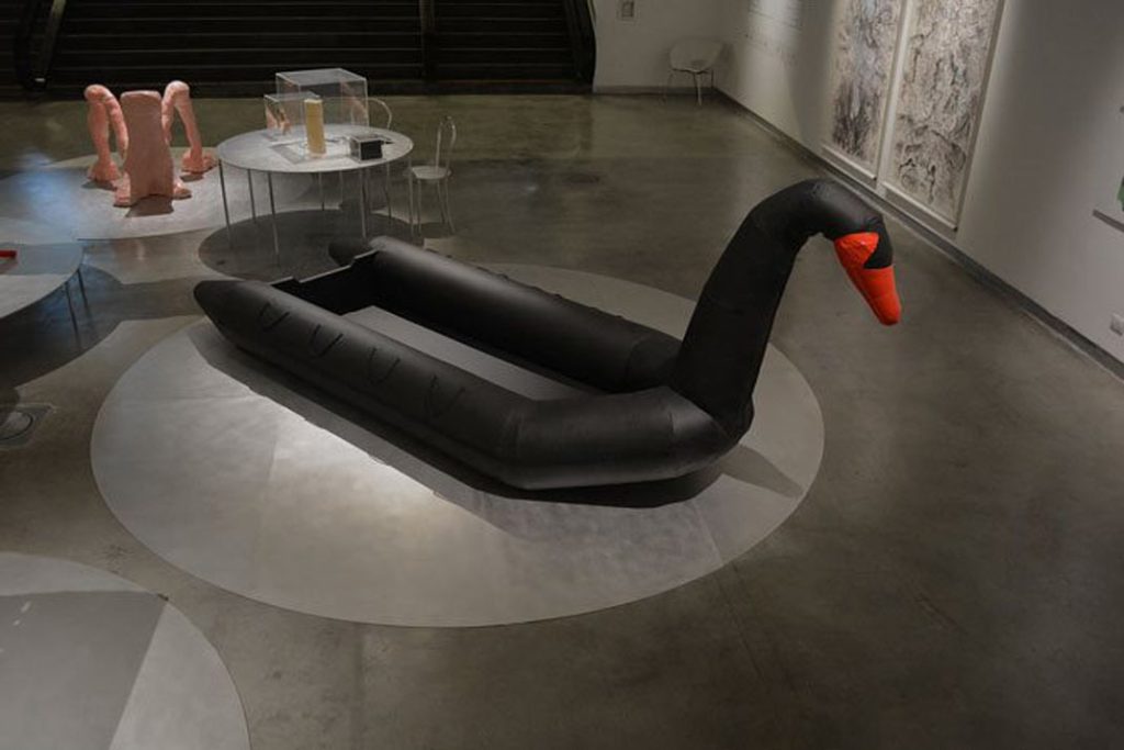 המעצבים ניל ננר ואביחי מזרחי, יצרו עבור התערוכה את הפרויקט ברבור שחור, סירת הצלה המיועדת לפליטים החוצים את הים התיכון ומעוצבת בהשראת גלגלי הצלה שנראים כחיות צעצוע מתנפחות. במציאות היומיומית אנו רגילים לראות את הצעצועים האלה בשימוש ילדים, או נטושים במרחב לאחר שנסחפו אל החוף על ידי זרמי ים פנימיים. חיית הצעצוע של ננר ומזרחי עצומת ממדים. הפער שמתקיים בין הדימוי הנאיבי, שמגיע מעולם הילדות, לבין סירת הגומי הריקה – דימוי מעולם הפליטות, מפעיל את הדמיון של המבקרים. הם אלה שבונים בעיני רוחם את התסריט שקרה לפליטים ״הנוכחים-הנעדרים״.