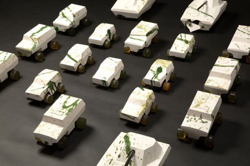 עבודה נוספת שמאתגרת את המונח משחק היא משוריינים של המעצב עוז בירי. עבודה זו פותחה כפרויקט גמר במחלקה לעיצוב תעשייתי בבצלאל, האקדמיה לאמנות ועיצוב, ירושלים (מנחה: טל גור). משוריינים הוא אוסף של ״רכבי צעצוע״ המופעלים באמצעות שלט רחוק. אך רכבי הצעצוע האלה מתעתעים. את המורפולוגיה העגולה והרכה שמאפיינת מכוניות צעצוע, מחליפה צורתם של רכבים צהליים – טנקים וקומנדקרים צבאיים. את החומריות העמידה שאמורה להתמודד עם פגיעות, מחליפה קרמיקה עדינה ושבירה. את הצבעוניות הילדותית והעזה, מחליפים גוונים לבנים עם השפרצות של צבעי חאקי וירוק צהליים. במשחק של בירי, לא ניתן לשחק. שבריריותו מעצימה בצופה את תחושת ההחמצה, שכן כשהיה בירי בן 11, הוא שכל את אחיו הבכור, שנהרג בזמן שירותו הצבאי.