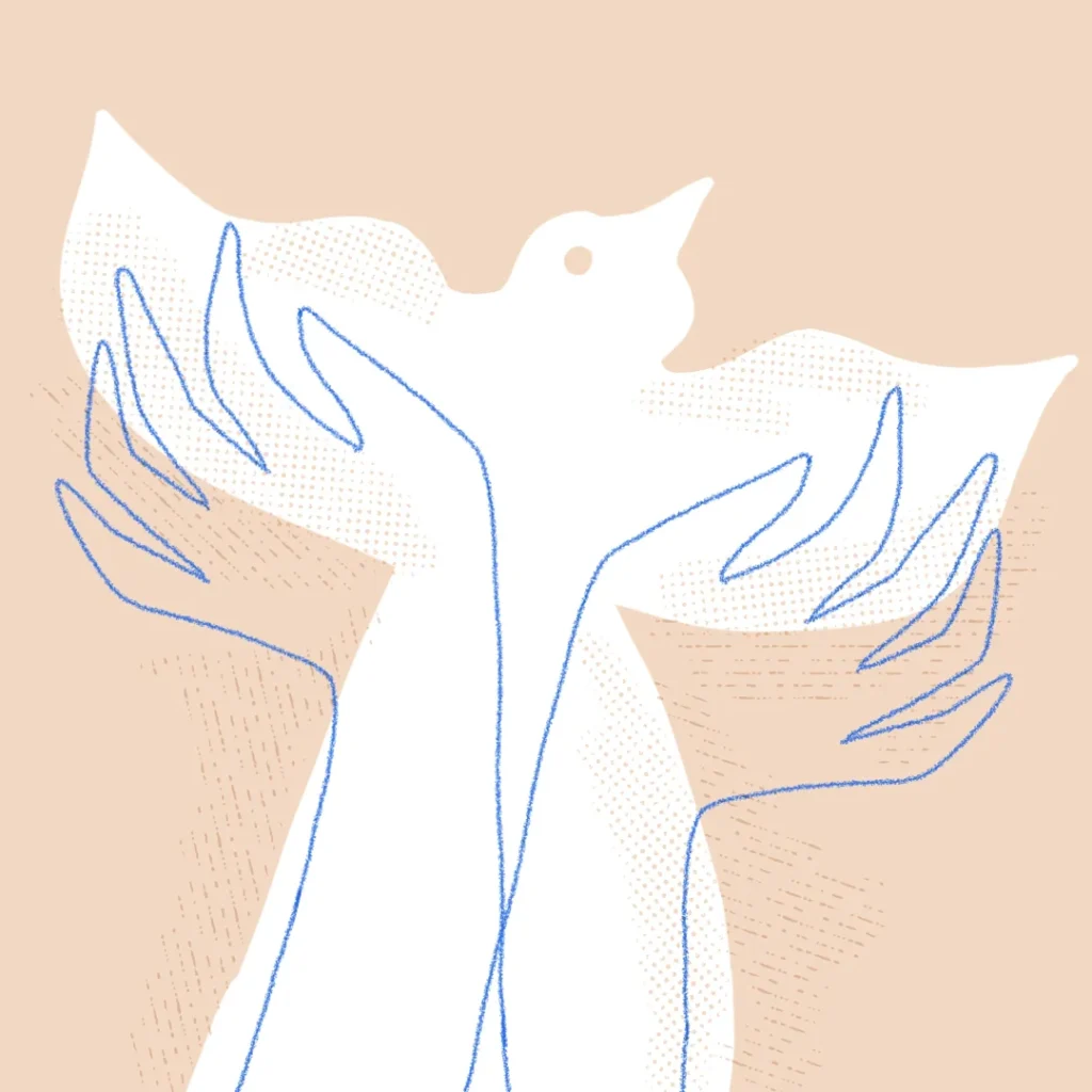 "מתוך זה יצרתי את הדימוי של שירי, אריאל וכפיר הקטן בתוך השמיכה שלהם. שנזכור איזה אמא לביאה היא שירי, שהם ישארו במחשבה שלנו כל הזמן. החלטתי שאני אמשיך ליצור דימויים שקשורים לחטופים, באופן כללי או ספציפי. למשל בשישי כששוחררו יהודית ונטלי רענן, ישבתי להכין עוד עבודה. זאת הייתה הפעם ראשונה שהצלחתי לחשוב על המילה תקווה והשתמשתי בדימוי של היונה, כמו משאלה שזאת ההתחלה של שחרור חטופים נוספים".