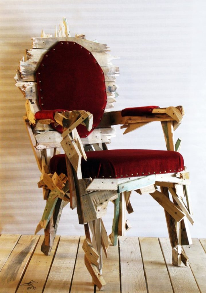 בכסא של "גודספיד" (ראו תמונה בהמשך הכתבה), מותחים המעצבים ריפוד מלכותי מקטיפה בגוון בורדו על גבי מבנה משאריות גזרי עצים וקרשים והופכים את החומרים הנמוכים לאובייקט מפואר המהדהד שפה חזותית של תרבות אירופאית עשירה. בנוסף, ההתכתבות של האובייקט עם כסא הפבלה של האחים קמפנה שהפך אייקון בשדה העיצוב מאצילה עליו הילה נוספת של יוקרה.