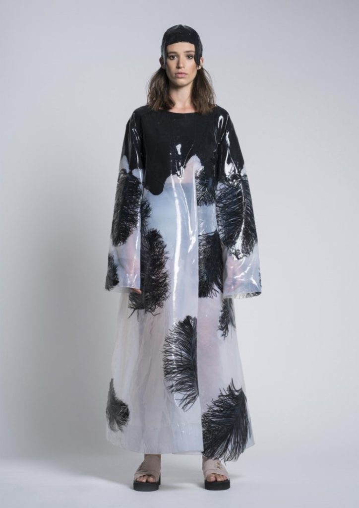 קורן אביגיל יצרה טקסטילים משני חומרים המנוגדים – זפת ונוצות וכך גם קראה לקולקציה. קורן תופסת במקרה הזה את משבצת "המחקר החומרי" שכן החומר החדש הוא העיקר והדיסוננס בין החומרים המנוגדים – קר וחם, טבעי ומלאכותי, הנשלט והלא נשלט הוא שהכתיב את מבנה הדגמים שפחות מתייחסים לקימורי הגוף ביחס לקולקציות אחרות. "טרנד" המחקר החומרי נפוץ במיוחד בשנים האחרונות בקרב מעצבים תעשייתיים תוך ניסיון לייצר חומרים חדשים-ישנים באמצעות שילובים לא שגרתייים, טכנולוגיה ועבודה ידנית יחד. מעניין לבחון את התוצאה של אביגיל בהקשר הזה – שיצרה מהחומר פריט לבוש שמשאיר לחומר את הבמה ואף מבטל כמעט לגמרי את הגוף שמתחתיו.