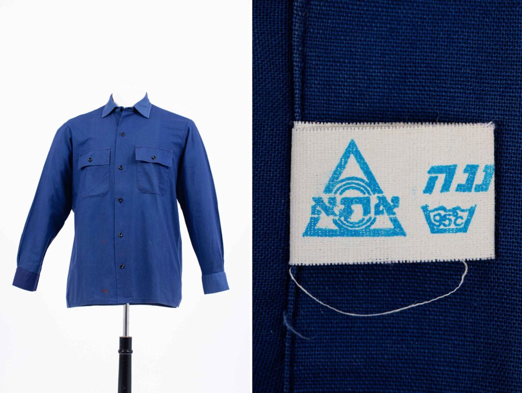 [3] אתא, חברה לטקסטיל מעצב ; בן יוסף, אחיקם צלם, תצלום – חולצה בצבע כחול, [בערך 1950-1985], סימול BFiAt-011, ארכיון אתא חברה לטקסטיל בע"מ – בית פישר; Ata Textile Company LTD – Beit Fisher Archive.