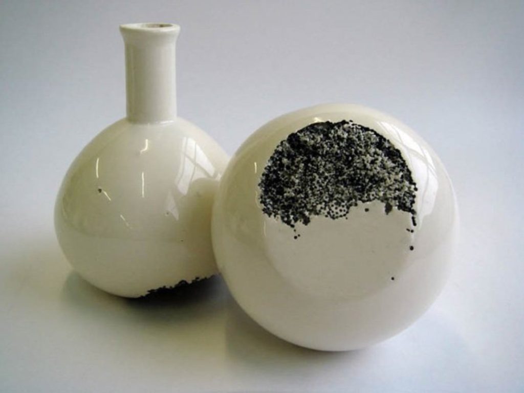 כדי ליצור מראה של מחלת הכולרה הוסיפה ואן אסן מלח לחומר וזה התגבש לגושים. "יש בזה קסם," אומרת ואן אסן, "כי אין לדעת איפה הגושים ייווצרו." כששורפים את הכלי התגובה הכימית משנה את צבע החומר. באותו כלי יש שימוש גם בחומר אורגני – אורז – שההשפעות שלו מגיעות מטכניקות מסורתיות בעולם היפני. האורז פשוט נשרף בתנור ונעלם אך מותיר אחריו את חותמו הצורני בחומר.