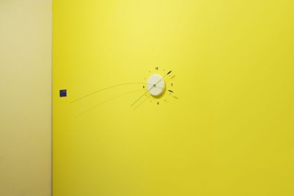 אז, קודם כל, התערוכה יפה. הקיר המקדם את פני הבאים לתערוכה צבוע צהוב, ועליו שעון בודד אחד שמחוגיו הארוכים כמו מחושים של חרק, מגששים את דרכם בשקט ויוצרים תחושה של זמן אחר, זמן שאינו מתקתק, מאיץ, דוחק בנו. זמן שיש לו את כל הזמן שבעולם.
