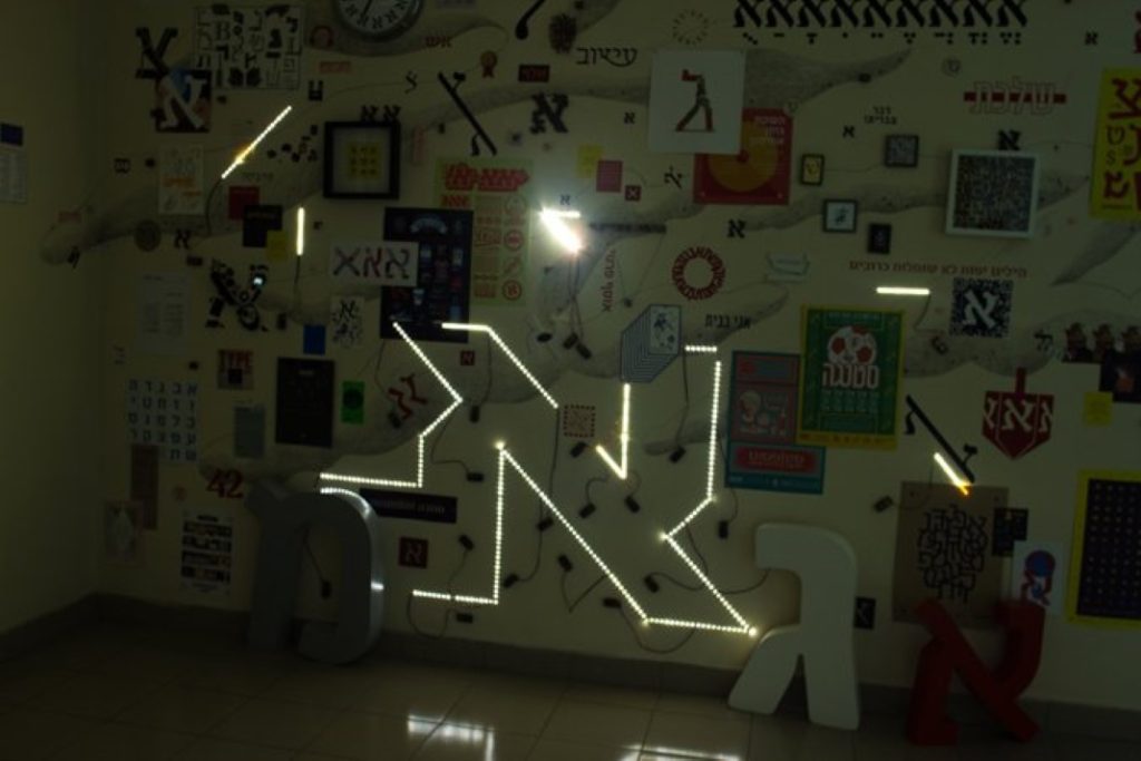 בחדר הפנימי שובה את העין קיר שלם של אאא – בית לטיפוגרפיה עברית. חברי הקבוצה הזמינו מעצבים לקחת חלק בעיצוב הקיר ויצרו יחד קולאז' מרתק עמוס גופנים מעוצבים, מצוירים ישירות על הקיר, מודבקים בפתקיות, מקשטים פוסטרים וזוהרים בחושך כשמכבים את האורות.
