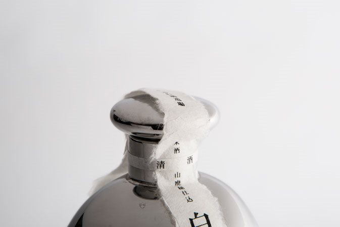 הבקבוק עשוי פלדת אל־חלד ועליו תווית נייר יפני, המיוצר לפי מסורת ארוכת שנים. השימוש בתווית בעיצובו של בקבוק למשקה העתיק אינה מפתיעה את הבקיאים במורשת ובתפקיד החשוב שיש לנייר בתרבות היפנית. נייר יפני מסורתי מיוצר בבתי מלאכה שקיבלו מעמד של מורשת שימור חיה, ומשמרים בהם טכניקות וחומרים שהדורות הקודמים השתמשו בהם לייצור נייר. שלושה סוגים עיקריים של סיבים צמחיים משמשים לייצור הנייר: Kozo, Mitsumata ו-Gampi. היחסים והשילובים השונים ביניהם מייצרים מגוון רחב של ניירות. עבור משמרים, יש לניירות היפניים שימושים רבים ומגוונים. טכניקות עבודה, חומרים וציוד כגון מברשות, סכינים, מסננות ודבקים שאנשי מקצוע יפנים משתמשים בהם, אומצו בידי משמרים בכל העולם לשם עבודה וטיפול בפריטים מוזיאליים.