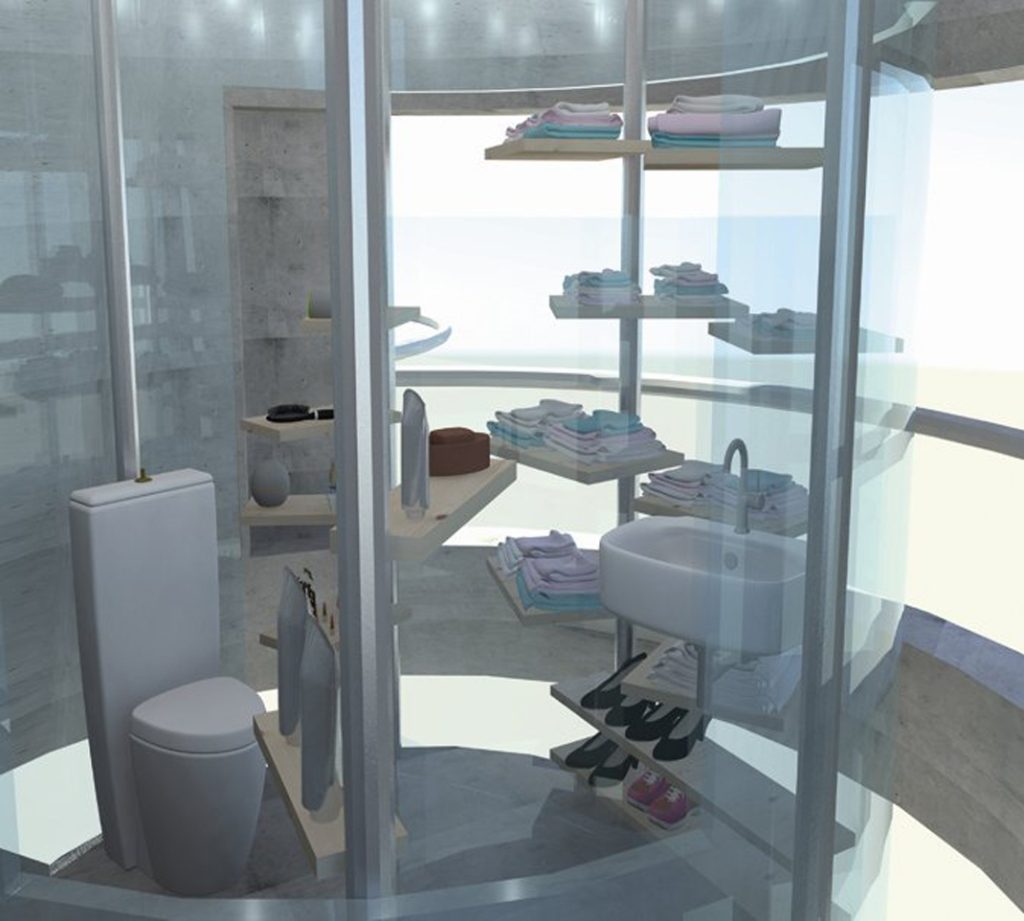 עיצוב החלל מותאם למסורת ולתרבות הנוודית וכולל חללי אירוח. בהדמיה: כניסה וטקס קפה, מיה שלף