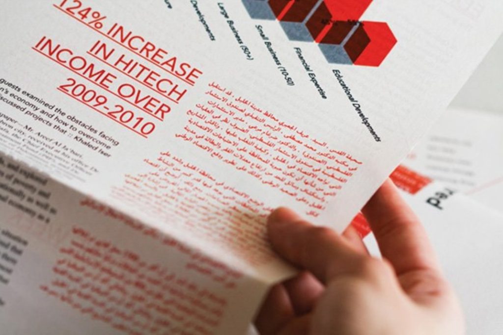זיו שניידר, אשר עיצבה את הלוגו יחד עם עידו גת תיארה את העבודה: "בשלב התכנון האסטרטגי בחרנו שלא להתמקד בקונפליקט, אלא להראות מבט אופטימי לעתיד. העיצוב המודרני בא למקם את העיר עם ערי מסחר מוסלמיות גדולות (כגון ערי המסחר בדובאי וקטאר), אשר שמו דגש על מודרניות בתוך העולם המסורתי-מוסלמי. השפה הגרפית לקוחה מתוך אלמנטים עיטוריים מוסלמיים ממערת המכפלה, שעברו עיבוד הייטקי ומאופק"