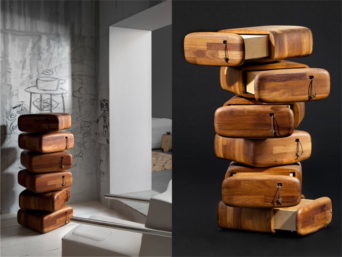 Secrets D-6 בעיצובם של אריק בן שמחון ובן פרנקפורטר, 2010, הינה שידת מגירות עשויות עץ אירוקו, עץ קשה בגוון חום-זהבהב בעל עמידות גבוהה, אשר נהוג לעשות בו שימוש לריהוט פנים כמו שידות וארונות. המגירות מונחות זו על זו במערום, סובבות על ציר מרכזי, וכך הופכות להיות אובייקט שמתייחס לחלל. שלא כמו שידה רגילה המוצמדת לרוב לקיר, אובייקט זה "מטופל" מכל צדדיו. "לכולנו יש סודות", אומר אריק "לא בהכרח אפלים, אלא פשוט סודות. אפשר לראות את המגירות הללו כערימת סודות, מקום אישי-פרטי".