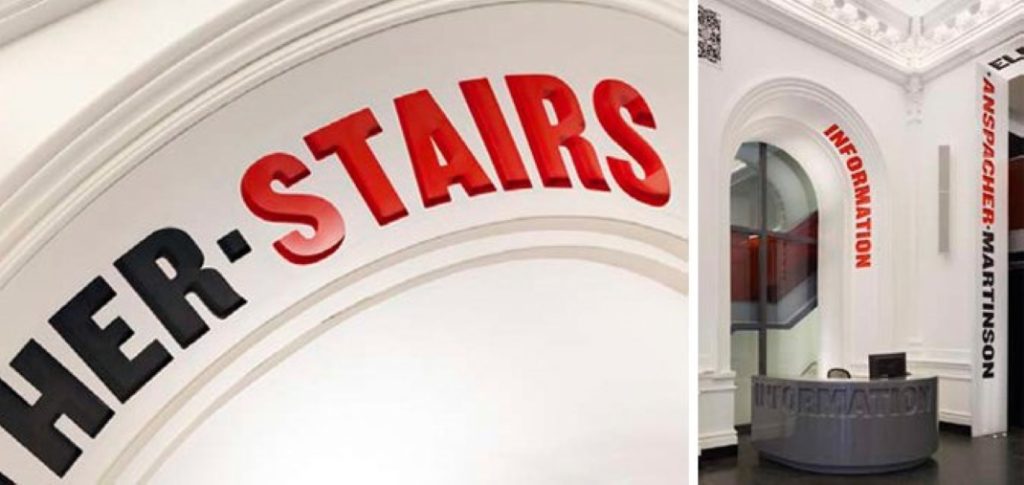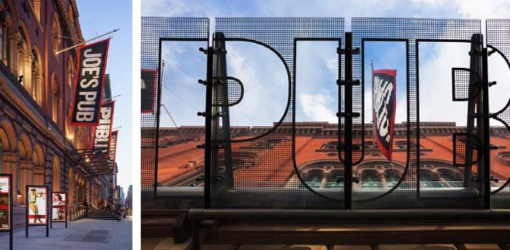 התאטרון הציבורי ניו יורק – הטיפוגרפיה בלובי מתמזגת עם המבנה הארכיטקטוני של הבניין