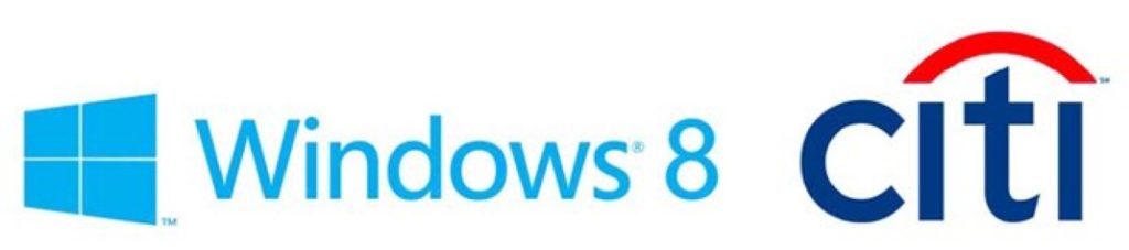 ימין: לוגו סיטי בנק. שמאל: עיצוב מחדש של לוגו WINDOWS 8