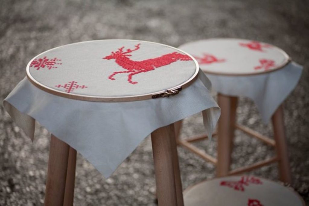 Goldilocks: חישוק הרקמה המסורתי הופך את מלאכת הרקמה, שטרם הושלמה, לחלק בלתי נפרד מהשרפרף.
