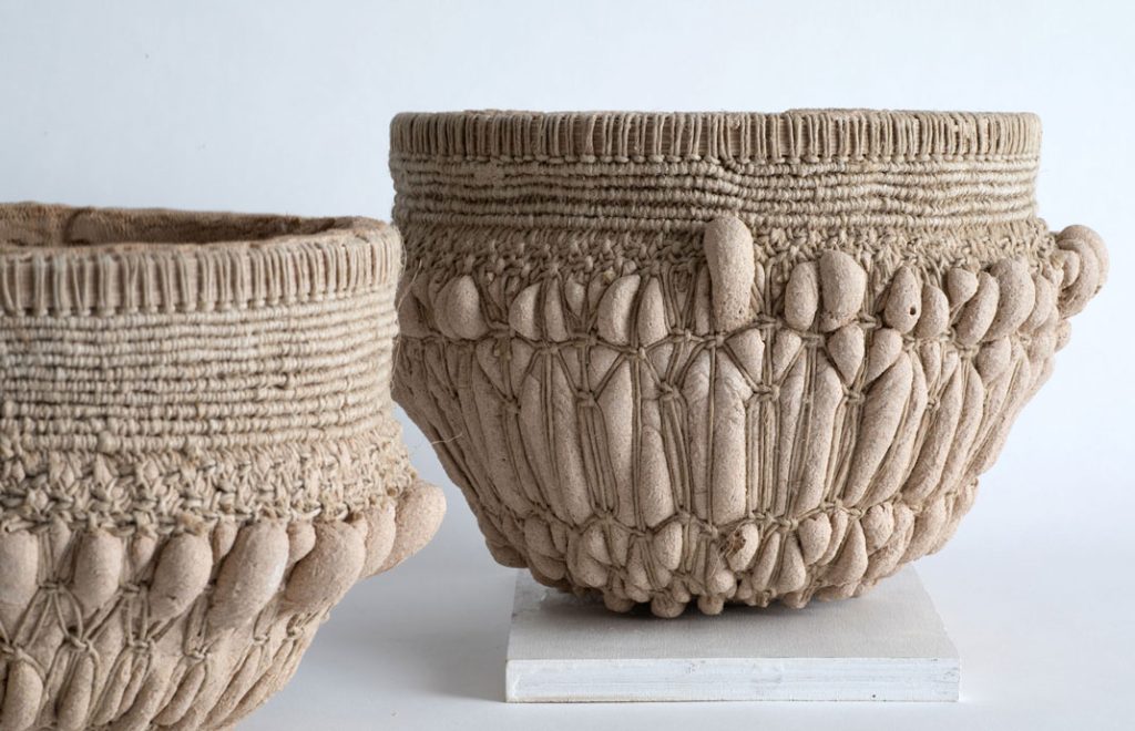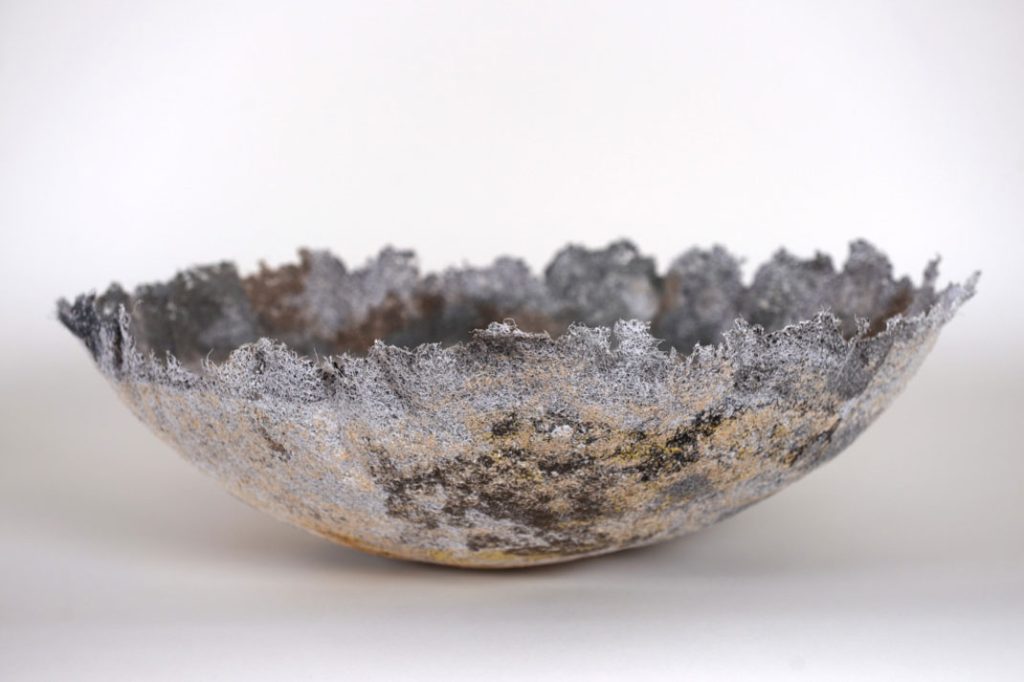 ר.ז: נכון מאד. דוגמה לקצב הזה לזה ניתן לראות בסרטון של חואני, בו היא יוצרת קערות מנייר שהיא תופרת תפר על תפר, שוב ושוב. הסרטון אורך אמנם רק דקה אבל זו עבודה שלקחה שעות ארוכות של אותה פעולה קטנה שחוזרת על עצמה. הן בעצמן מגדירות את זה כעבודת נמלים. התוצרים שלהן מלאי מסתורין ועמוסי פרטים ברזולוציה גבוהה שממש ניתן לצלול אליהם, להביט בהם שוב ושוב ובכל פעם לגלות עוד משהו חדש.