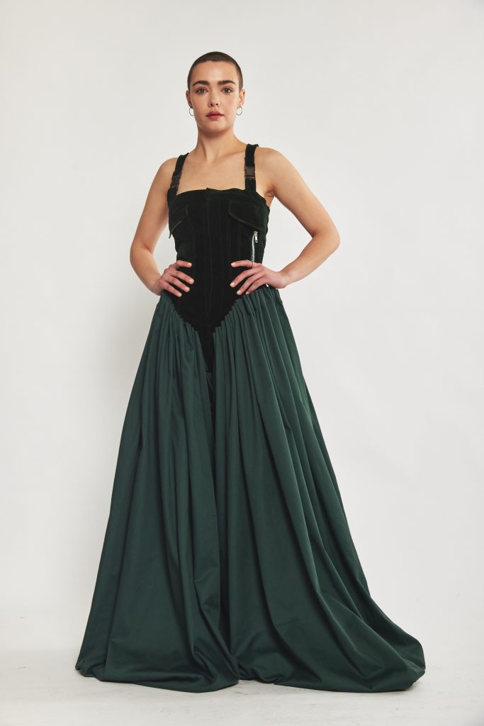"במהלך העבודה ליווה אותי המשפט של אלבר ״אופנה צריכה להיות פשוטה, כי החיים מסובכים גם ככה״. רציתי לדבר על השאיפה לאיזון. היה חשוב לי ליצור בגד ששואף להקל על האישה ועל החיים המורכבים שלה, ובו זמנית שומר בעצמו על איזון בין יופי לנוחות".