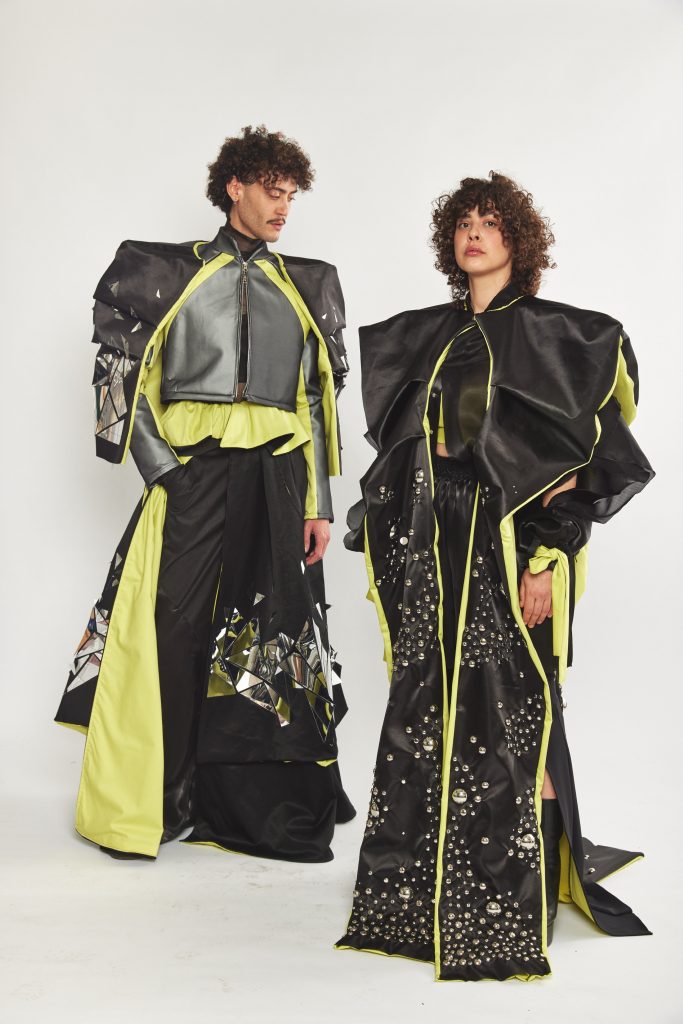 בשתי מערכות הלבוש משובצים שברי מראה במגוון קומפוזיציות. מה הוביל אתכם לשימוש בחומר?