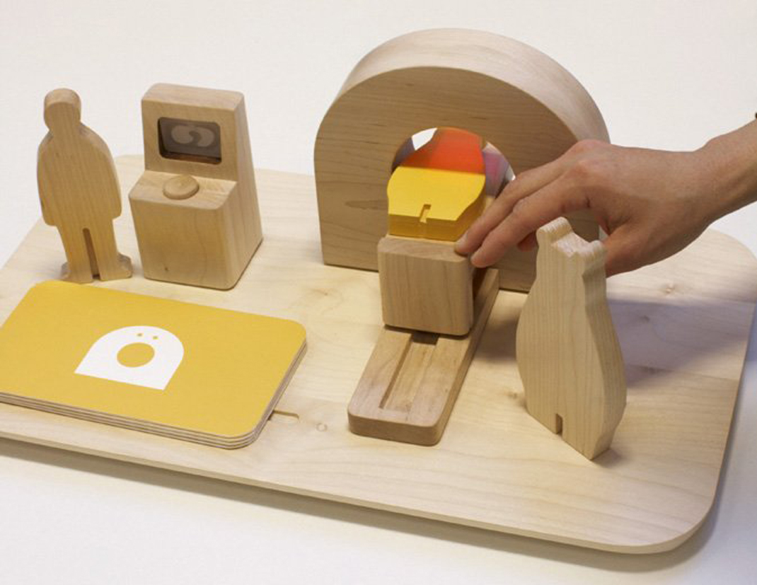 שני מעצבים צעירים בחרו להתמודד עם החוויה הלא נעימה של אשפוז בבית החולים. היראקו איממורה יצרה סדרה של צעצועים לחדרי המתנה שמאפשרים לילדים להתמודד עם הפחדים שלהם ולהפחית את הלחץ. דרך שיחות עם רופאים ואחיות וצפייה בילדים בבתי חולים הבינה המעצבת שילדים עושים שימוש במשחק כדי להפיג פחדים. הצעצועים שעיצבה מדמים מכונות שיקוף כמו CT, XRAY ו-EKG מלווים בספרי תמונות ומאפשרים לילדים בני 3-6 להבין מה הם אמורים לעבור. כך, כשהם מעבירים את המיטה דרך המכונה נדלק אור אדום וכשהם לוחצים על כפתור מופיע על המוניטור שיקוף של גוף של ילד.