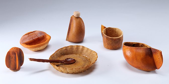 אורי זוננשיין הציג סדרה של כלים מרתקים עשויים קליפות הדרים. כלים אלה, העשויים מחומר הגלם המקומי והמוכר לנו, הם אסתטיים, קלים ועמידים בפני מים, זאת לצד היותם מתכלים לחלוטין.