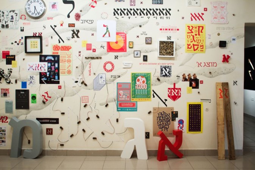 בחדר הפנימי שובה את העין קיר שלם של אאא – בית לטיפוגרפיה עברית. חברי הקבוצה הזמינו מעצבים לקחת חלק בעיצוב הקיר ויצרו יחד קולאז' מרתק עמוס גופנים מעוצבים, מצוירים ישירות על הקיר, מודבקים בפתקיות, מקשטים פוסטרים וזוהרים בחושך כשמכבים את האורות.