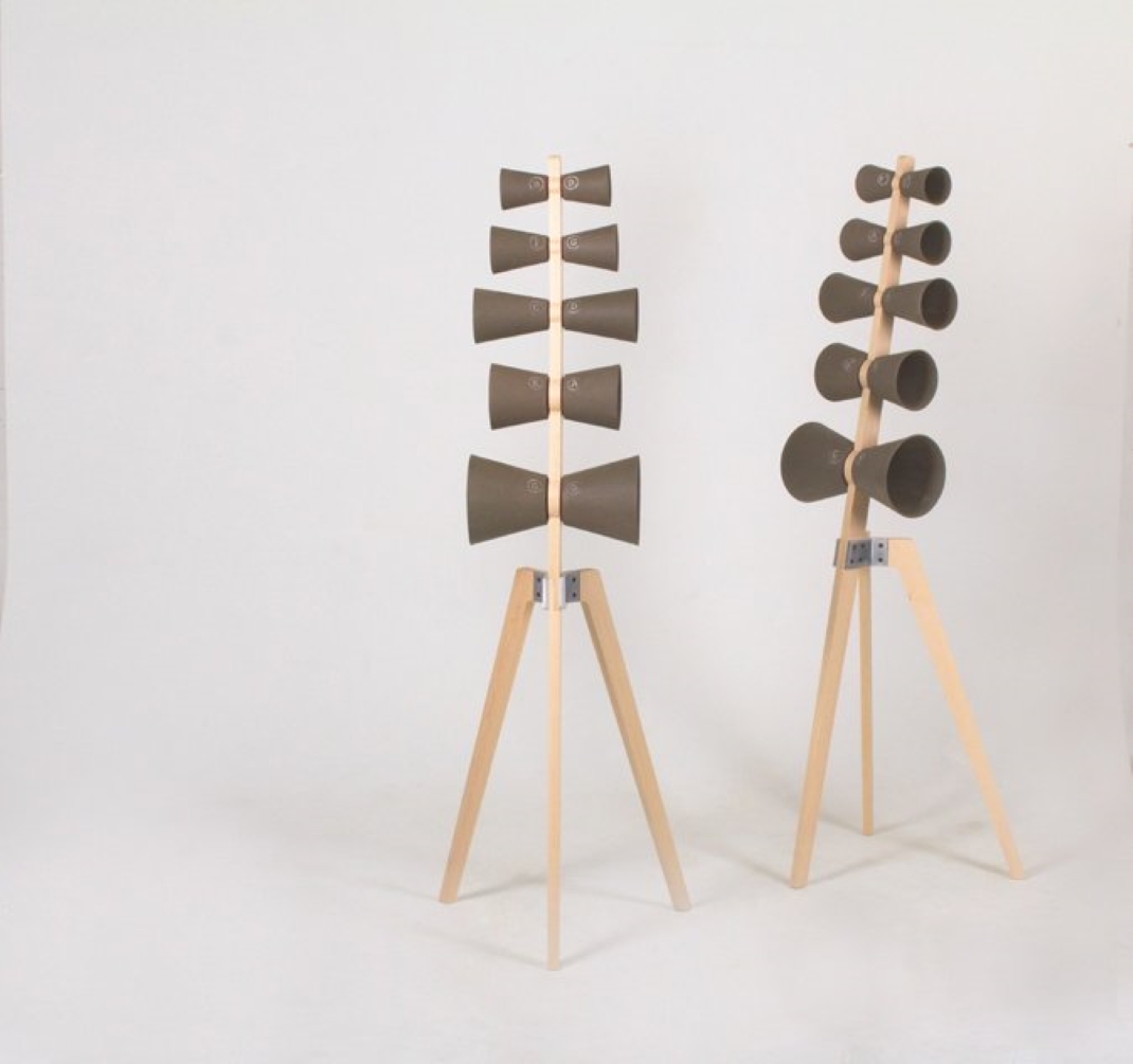 מתוך תובנות המחקר עיצב יהלומי סדרה של עשרים פעמונים העובדים בצורה הרמונית אחד עם השני.