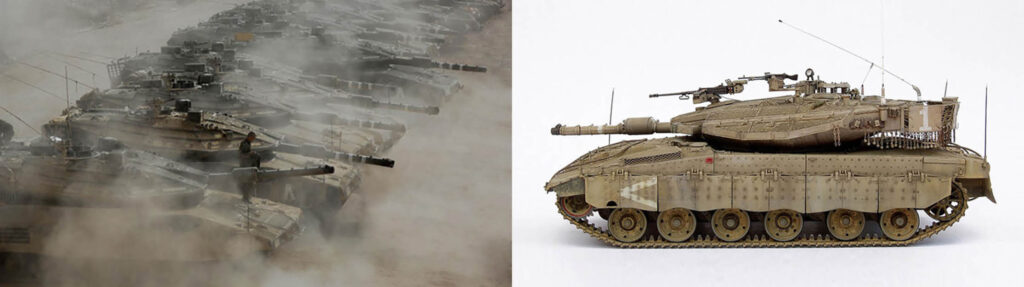 אפילו לטנק המרכבה יש כיום מופע כמו של מכונית קוּפֶּה. כשחושבים על אייקון של טנק, מדמיינים בדרך כלל הפרדה בין התובה (החלק התחתון) לצריח (החלק העליון). אבל בטנקים של היום ההפרדה בין החלקים מטושטשת יותר. קשה יותר לזהות טנק בצורה הזאת כאובייקט מעשה ידי אדם, במיוחד ממרחק של 10 קילומטרים. וכאשר הדברים האלה לא זזים, ומפקד הטנק יודע למקם אותו נכון בתוך תווי הנוף, לא פשוט לזהות את זה. חלק מהפונקציה פה, יצרה אסתטיקה מסוימת.