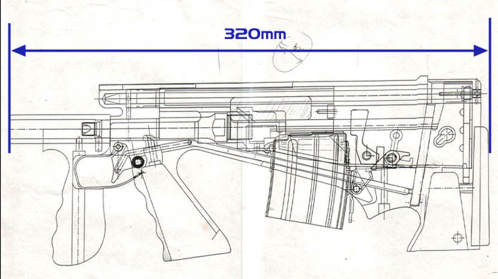 תע״ש החליטו ליצור נשק חדש ויצאו במכרז פנימי שהשתתפו בו שלושה צוותים של מהנדסים. הצוות שזכה להמשיך ולקדם את הפרויקט, היה הצוות שהציג את הנשק שהיה בשרטוט שהגיע אלינו. במכרז הוגדר שהנשק יהיה בתצורת בּוּלְפַּאפ. כלומר, מראש הגדירו שהמחסנית נמצאת לפני הידית ולא אחרי הידית, כמו בנשקים רגילים. וגם החליטו שמשתמשים הפעם במחסנית של M16 – אלה היו הכללים. במקור יועד הנשק בשרטוט להגנה עצמית עבור נהגי משאיות וצוותי שריון, כשאם רוצים להתאים אותו לחי״רניקים צריך להאריך לו את הקת ואת הקנה.