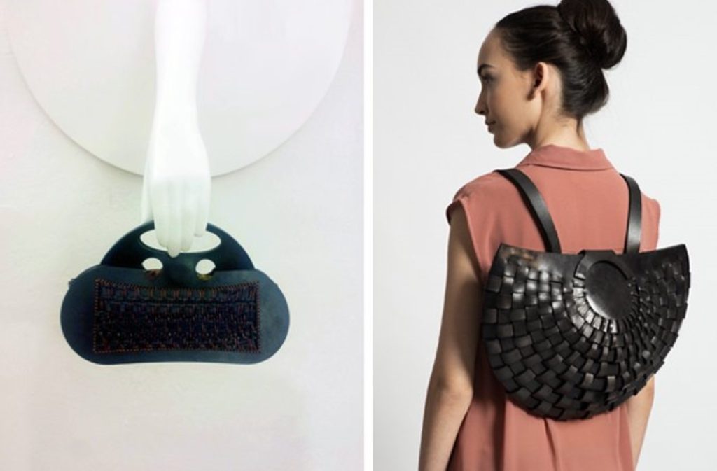 Made an impression on us: Anat displayed her bags on white arms that came out of the wall; a creative and interesting form of display. She created an elegant collection of bags that could easily be sold tomorrow in select stores. The bags are interesting, in geometric shapes such as a half-circle, a triangle, and so forth, with colorful details and stitching that emphasize the geometric shape and blend well with the leather.