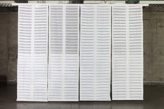 On the whole, this year’s exhibition comprises projects that exist in three different frameworks: textile intended for fashion, textile oriented toward lifestyle (interior design and product design), and textile that is a work of art in its own right, and is intended for a display space such as a gallery.If in the past many of the projects that were presented leaned toward the fashion world, this year sees a substantial change in the department’s perception. Even the textiles intended for and dialoguing with the fashion world are first and foremost textile designs and they do not attempt to provide answers to all the questions the fashion designer will have to contend with, for example the outline of the garment.Tamara Nagdimaev presents a design entitled, “Retrospect in Black and White” as part of the designs included in the Lifestyle section, although in this instance the fabrics could easily be transformed into wool coats in a European winter. The designer presents a group of cloths knitted in black and white. The rhythms, the materials, and colors originate from the landscapes of her childhood in the Caucasus Mountains.