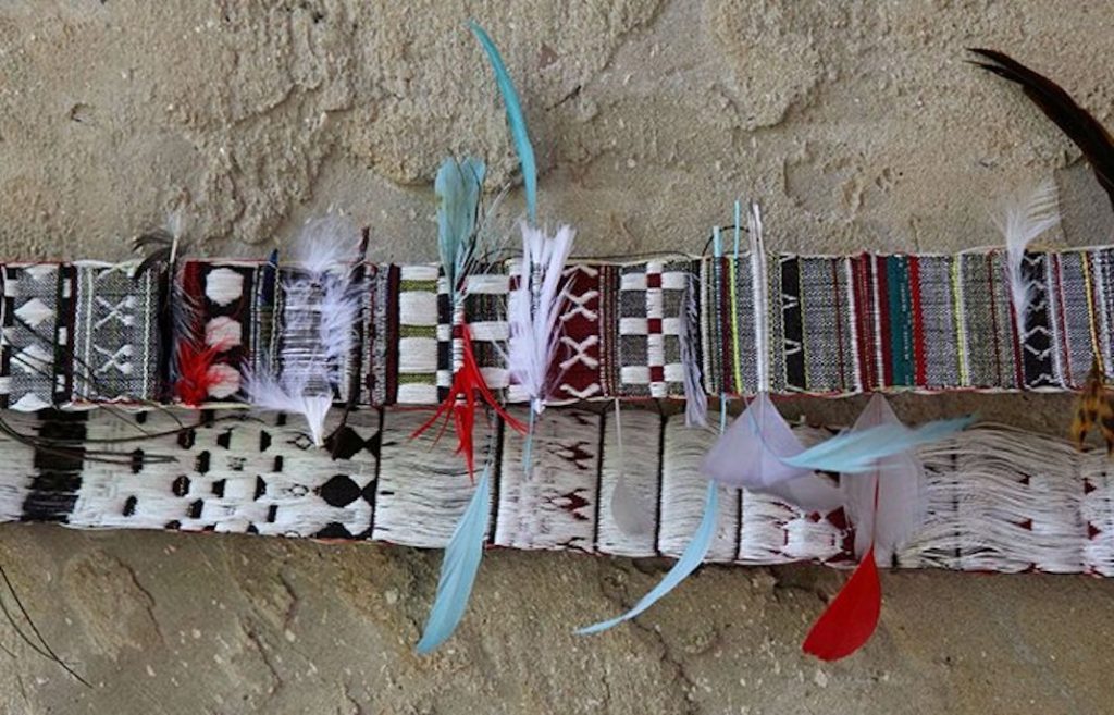 A return to the Arts and Crafts Movement, with emphasis on craftsmanship, intuitive creativity, handcrafting that frequently combines and develops into design by means of computerized technologies.In contrast with the industrial designer who first imagines the type of product and its purpose and only then searches for suitable materials, the textile designer usually works in a reverse process. Investigating the surface and working with the material at times yield unfamiliar products that have new functions; and sometimes the function is emotions.Two fascinating examples are provided by Yelena Trakhtenberg and Katja Zorin.The first, entitled “Dragon Belt”, which although the designer chose to treat as a textile work of art, could also easily become an accessory or garment in the hands of an haute couture fashion designer. “Protection Belt” is narrow and especially long, entirely hand-woven, incorporating within it strips of fabric, a variety of threads, and feathers. The end result is reminiscent of a ritual object or talisman from distant lands.