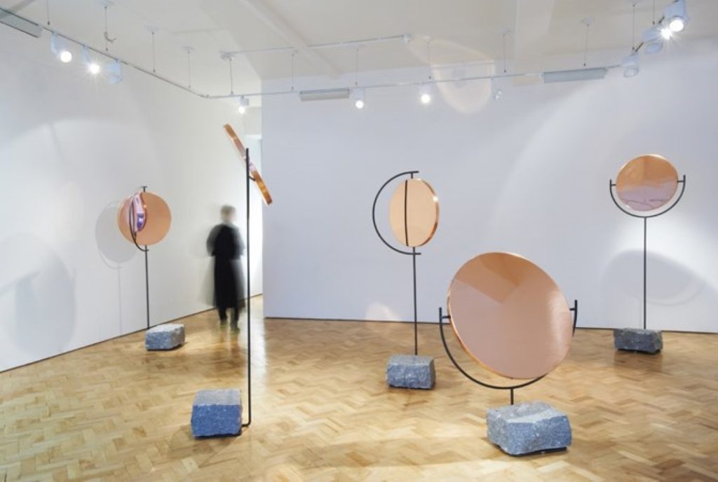 Gallery Libby Sellers showed a series of mirrors by designers Hunting & Narud. Launched at London Design Week, the series was designed by London-based Norwegian design duo Amy Hunting and Oscar Narud. The materials used to make the mirrors pay homage to Norway’s topographical heritage and local industries. The rounded shapes are inspired by the visual language and movement of celestial bodies.