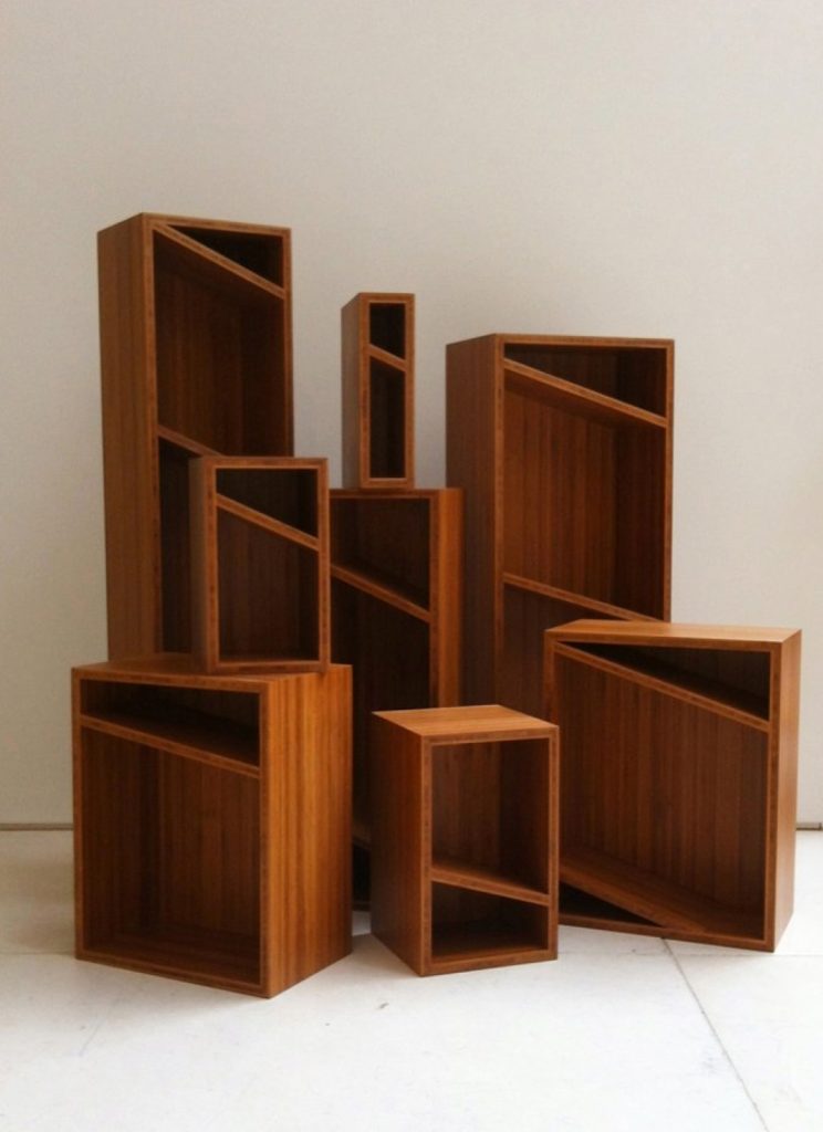 Showing in the Mint was an interesting exhibition entitled ‘Cabinets of Curiosity’. Designer David Amar showed Wallevich 2013, a wall-mounted cabinet composed of a series of wooden boxes meticulously made of bamboo ply with angled shelves. The composition of the boxes on the wall is inspired by Eight Red Rectangles, an oil on canvas painting by constructivist artist Kazimir Malevich from 1915. Mounting the boxes to form a rotated version of the original painting’s composition allows the shelves to become functional. According to Amar, this is how he links art to everyday life.