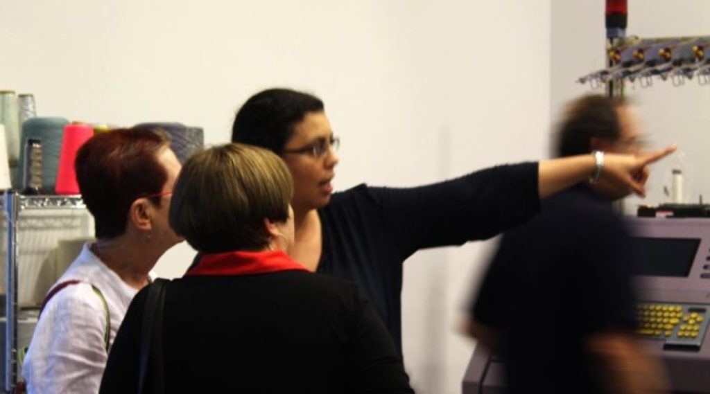 What happens when a material is part of the design process itself? The process of creating fabric using a computerized industrial knitting machine will be visible to visitors at the