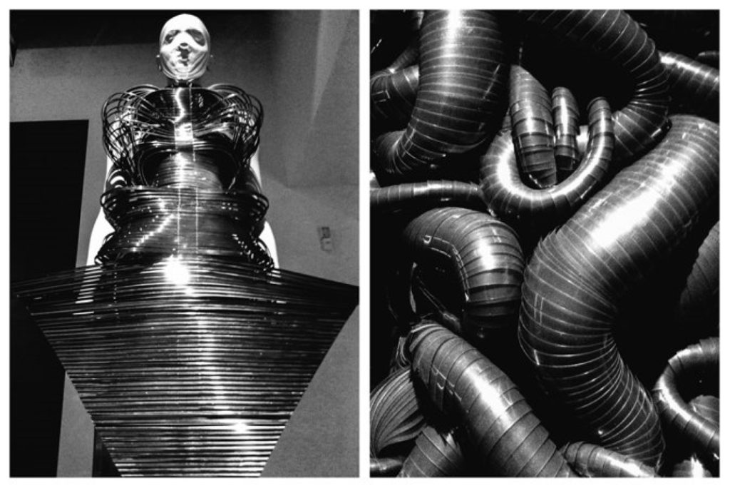 In his conclusion, Carroll contends that the previous art-horror cycle coincided with the period now known as postmodernism that advocates the deconstruction and blurring of boundaries. In this respect the rise of the horror genre in popular culture can be an expression of the growing fear over the deconstruction of traditional definitions. Art-horror is a form of creativity predicated on the dislocation of social categories through contradiction and distortion. Consequently, according to Carroll’s theory the current art-horror cycle can be interpreted as a visual version of the postmodern logic that brought with it conceptual works known for their instability. The blurring of boundaries between machine and human, between traditional and innovative materials, and between the conventional and futuristic, are clearly evident in Van Herpen’s work.