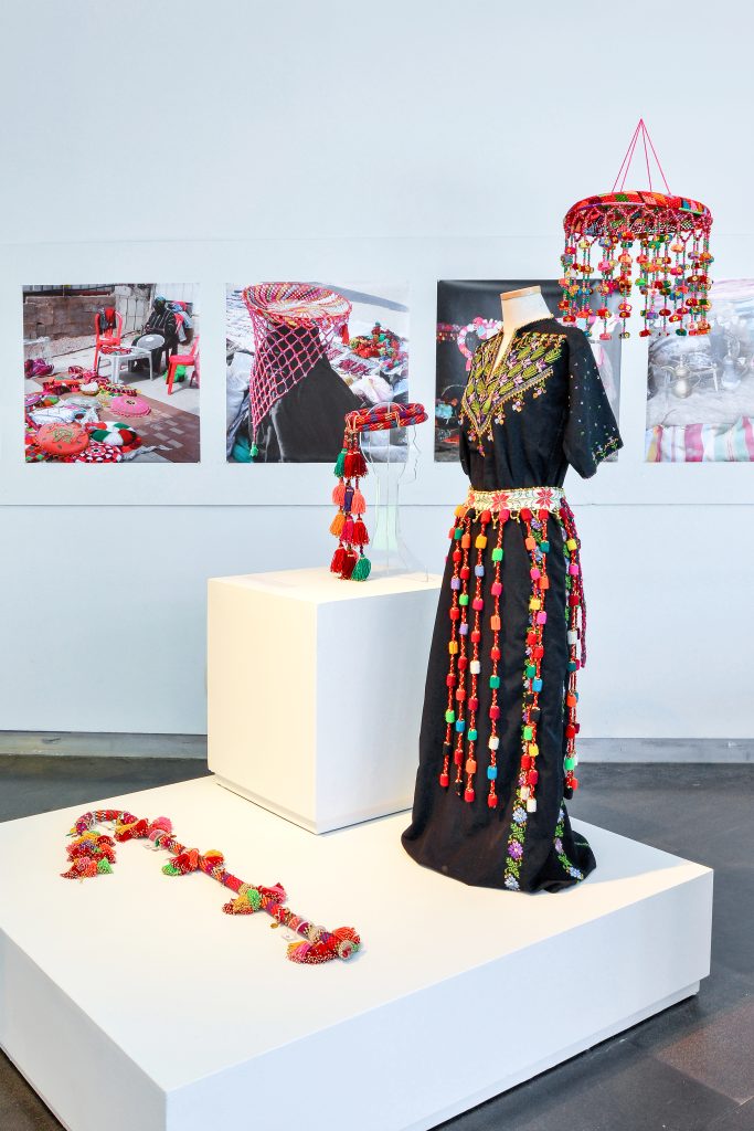 The exhibition presents for the first time a unique phenomenon of less than two decades that reveals the artistic work of women who experienced the transition from a nomadic life to life in permanent dwellings. Tracing the fate of the traditional crafts reveals a new phenomenon: a combination between the traditional techniques of embroidery and weaving and household objects. Objects that have fallen into disuse or have been discarded are reused as a basis for new creations completely covered in materials, colored synthetic wool threads, and market-bought textiles. The works are used to decorate homes, and are also significantly present at henna and wedding ceremonies that preserve tribal social cohesion. The exhibition focuses on creations that look like “newly-dressed tradition”, or as the women define themselves: “Renewing Bedouin traditions”.