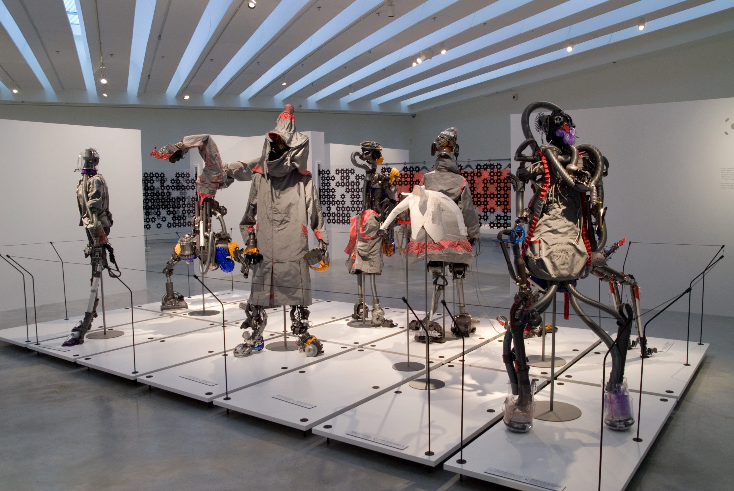 Designers who employ machines and technology neither for their streamlining abilities nor for their capacity to take advantage of mass production. Instead these designers look to machines to realize completely new forms and products. As opposed to simply incorporating technological components into wearable pieces, these designers either create new machines in order to realize their vision, they are inspired by machines as concepts, they turn to the machine as collaborator or surrogate in the design process, or the machine becomes part of the actual work.