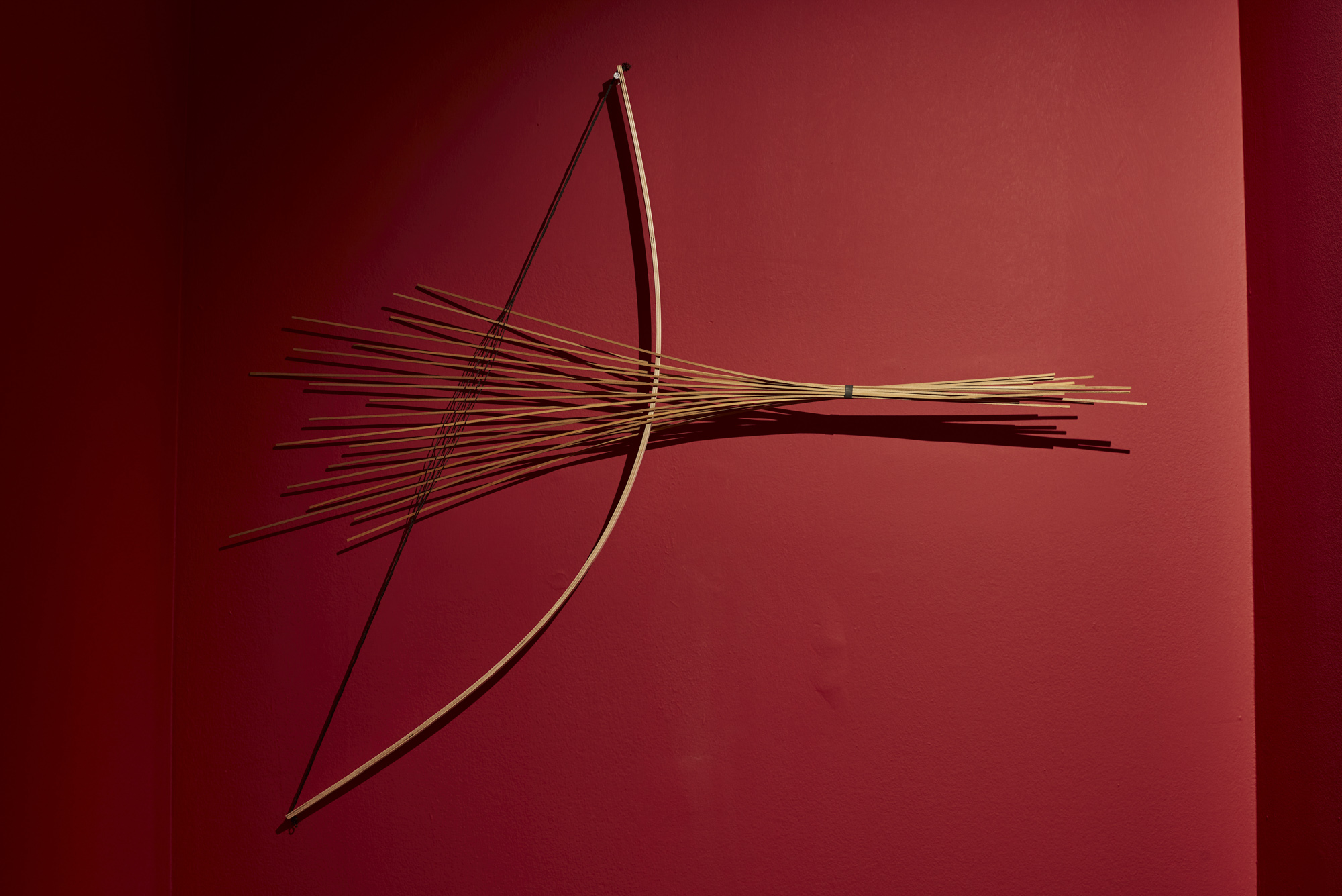 On display is a collection of 60 non-functional bows, created since March 2020. It was then that life underwent radical change: Kaufman was forced to replace his studio with his home space, and instead of his raw materials, he had to use items he found in his neighborhood supermarket. A package of bamboo skewers he purchased led him to engage in the bow – an object which as a young boy he used to make for games from whatever he could find. The classical archetype of a bow is a sophisticated structure built on the principle of tension and flexibility, comprising a flexible arc and a bowstring, a weapon with a glorious tradition and a past. This time, in contrast to his previous researches, Kaufman liberates the object from its original use. You are invited to tour the thicket of bows, to discover, identify, and lose yourselves in the mind of the designer-researcher and his collection of material insights.