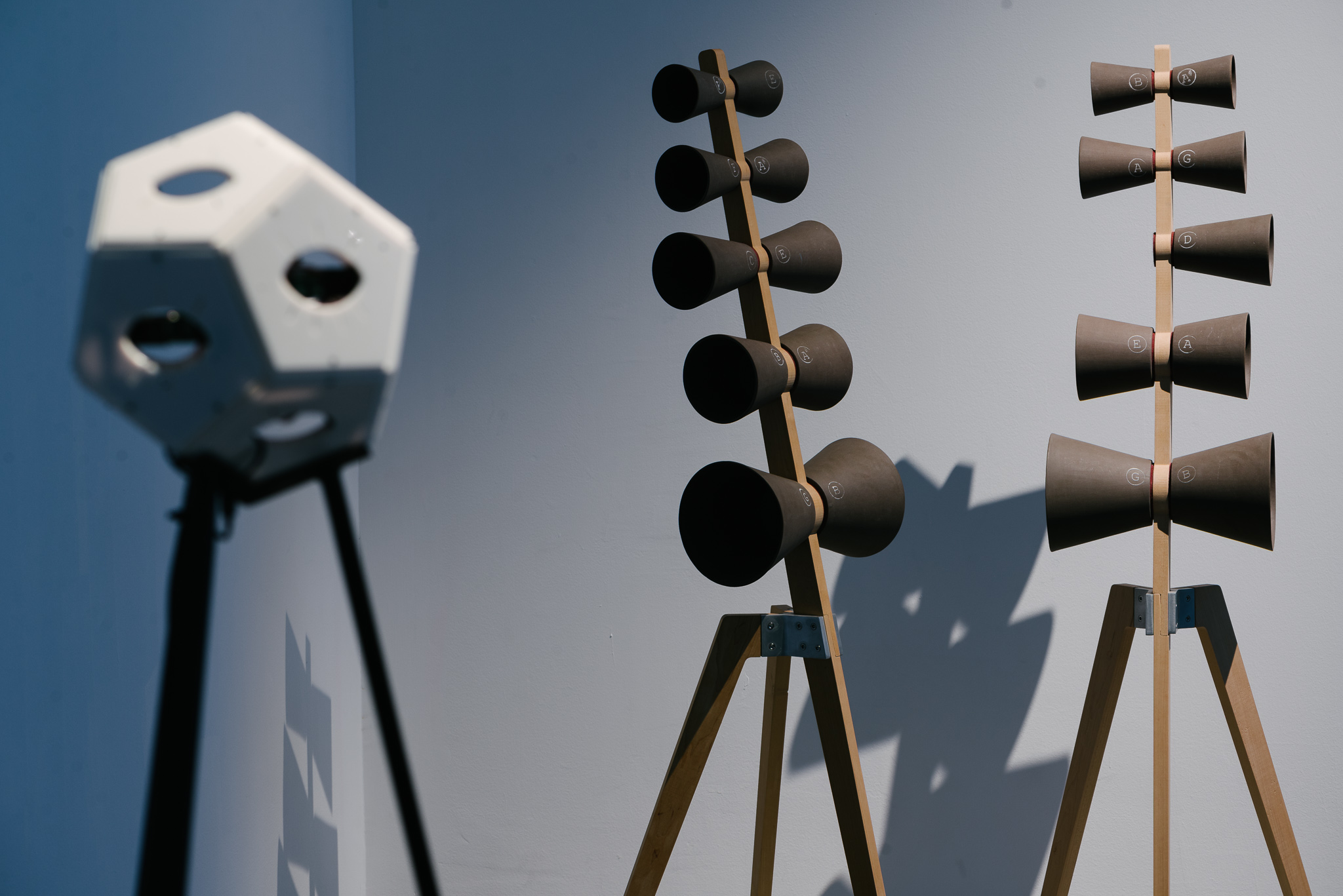 The relationship between sound and design is examined in this exhibition through three different prisms: object, space, and environment. The Upper Gallery features an exhibition curated by Anat Safran, Lila Chitayat and Elisabetta Pisu, containing over 50 objects designed from the 1960s to the present. The exhibits on display in this gallery are divided into three categories: stationary, mobile, and interactive objects, which exemplify the conceptual shift from object design to the design of a user experience. The Dr. Shulamit Katzman Gallery (the Lower Gallery) features Sensing Sound, an original interactive installation designed as an open platform. The installation includes original sound works composed especially for this space, which are translated into visual representations influenced by the movement of the visitors. The gallery is thus transformed into an echoing chamber, offering visitors a multi-sensory experience that underscores the connection between design, space, and sound.