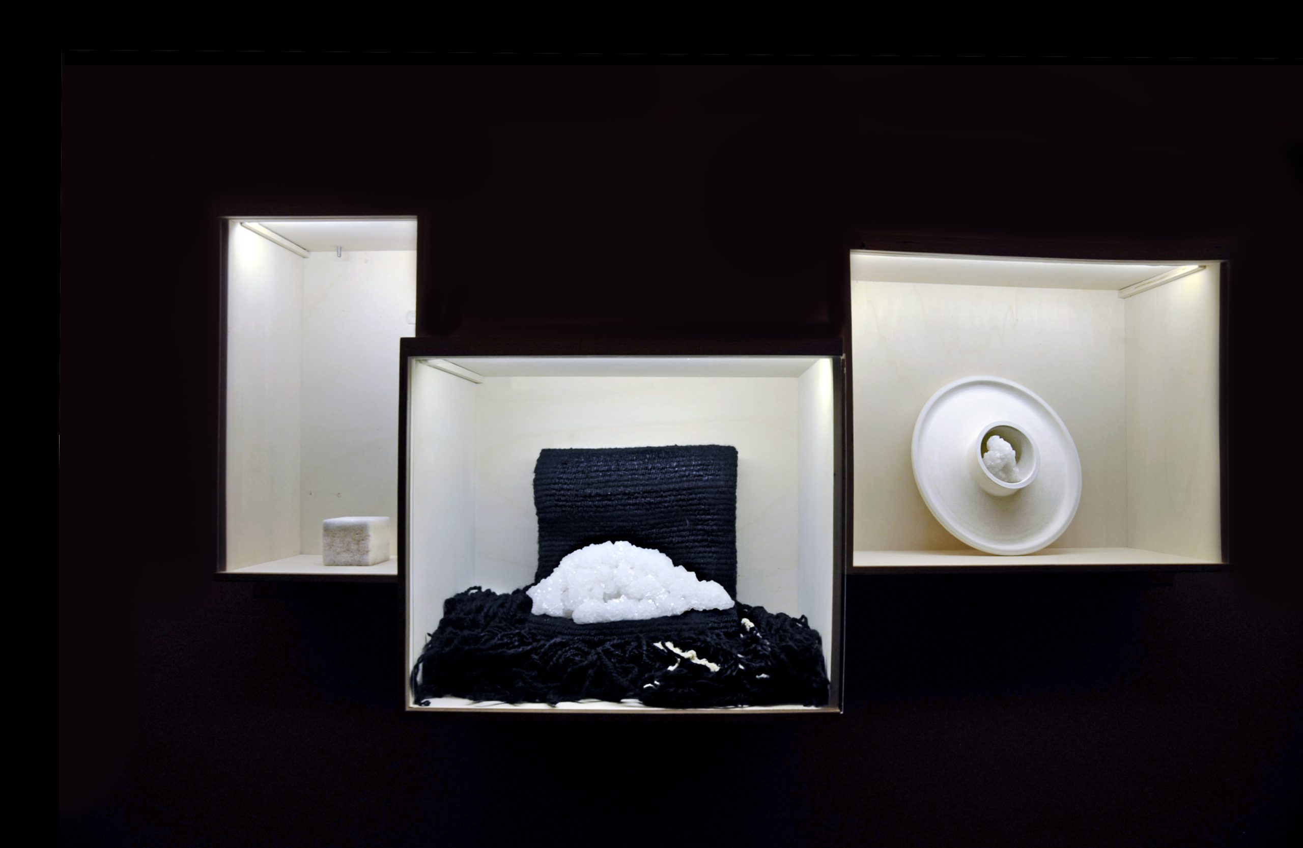 המעצב ארז נאבי פנה הציג בגלריה ההיקפית מחקר חופשי ולא שיגרתי במלח, שהתחיל מטיול במדבר יהודה, שם נגלה לפניו הר מלח שכולו תוצר לוואי של עבודות מפעלי ים המלח.