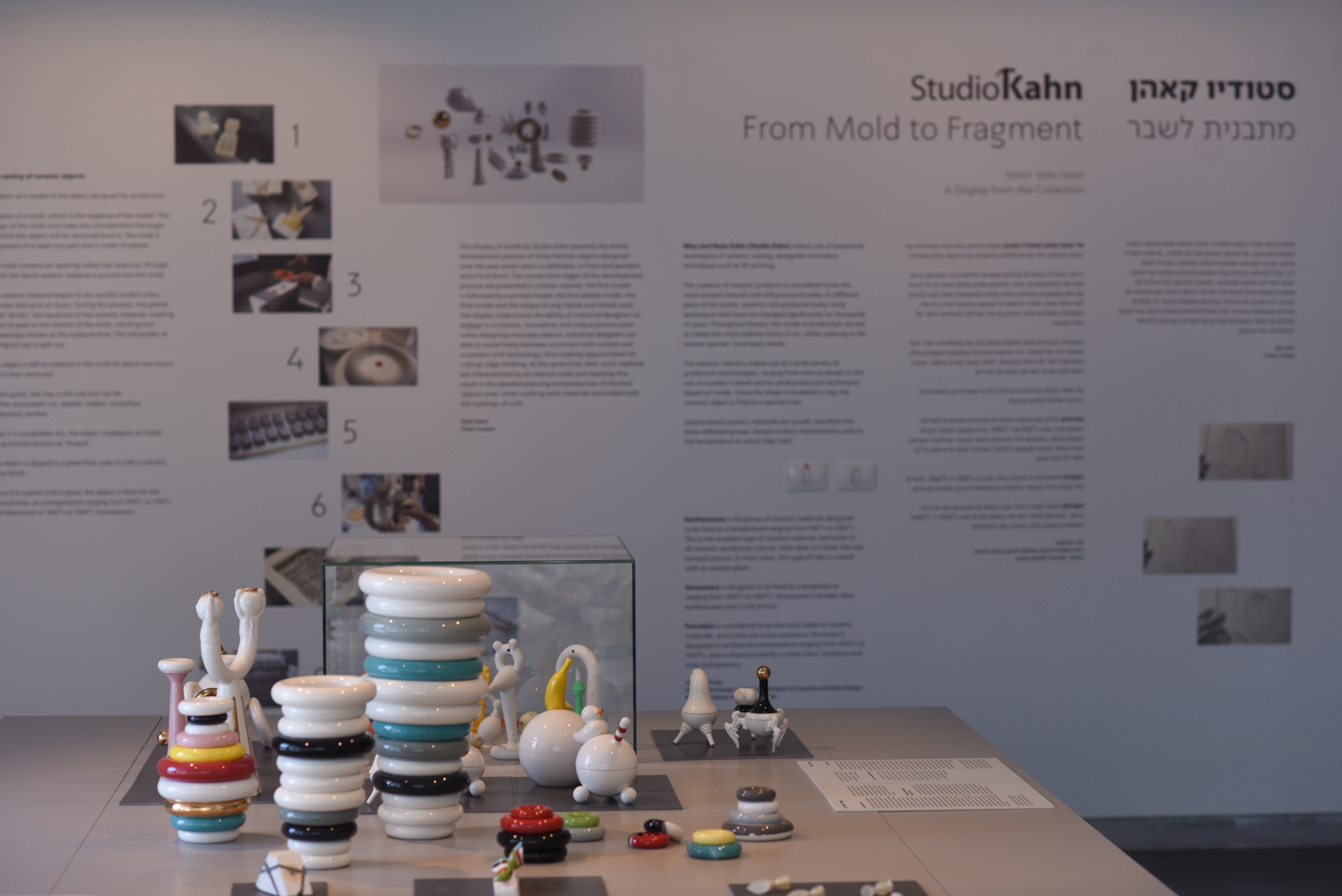 התערוכה "מתבנית לשבר" שהציגה פריטים שעוצבו על ידי סטודיו קאהן, תיארה תהליך פיתוח מלא ושלם המכיל שלושה חפצים מוכרים בשדה העיצוב הישראלי בשבע השנים האחרונות – מלחיה, שרשרת וקערת פירות. חשיבותם של החפצים היא ביכולת של מעצבים תעשייתיים לקיים הליך יצירתי-חדשני וייחודי גם בשלושה חפצים יום יומיים. מצד אחד יכולתם של מעצבים תעשייתיים לנוע בחופשיות בין תחומי תוכן וטכנולוגיה בדרך המזמנת עבורם הזדמנויות לחשיבה פורצת דרך, ומצד שני שיטות עבודה של מעצבים תעשייתיים, שהן מהלך סדור ובעל משמעת פנימית ניכרת, המוביל אותם לפיתוח תכנון מפורט לייצור בעל אופי מוצרי שלם גם בחומרים שבהווייתם שייכים לטיפולוגיה של קראפט.
