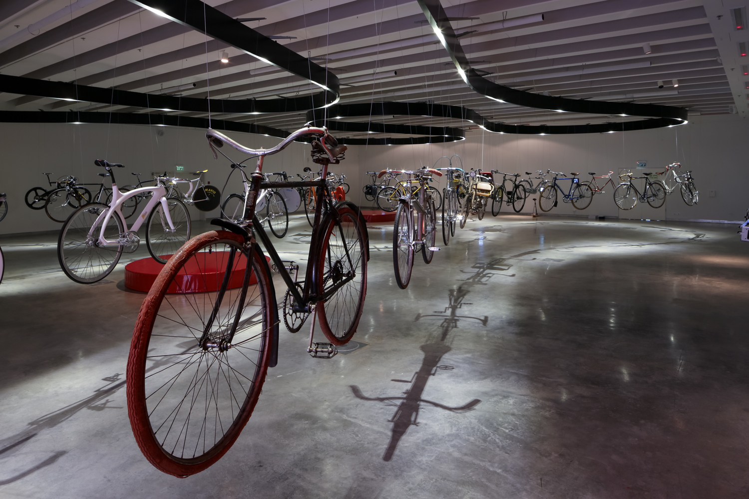 * בחלל הגלריה העליונה הוצגו לראשונה 43 זוגות אופניים אייקונים מתוך האוסף הפרטי הגדול ביותר של אופניים בעולם של האספן מיכאל אמבאכר. זו הייתה הזדמנות ייחודית לפגוש אופניים מראשית המאה לצד אופנים ששימשו חיילים צנחנים במלחמת העולם השנייה, ועד לאופניים המתקפלים לתוך מזוודה.